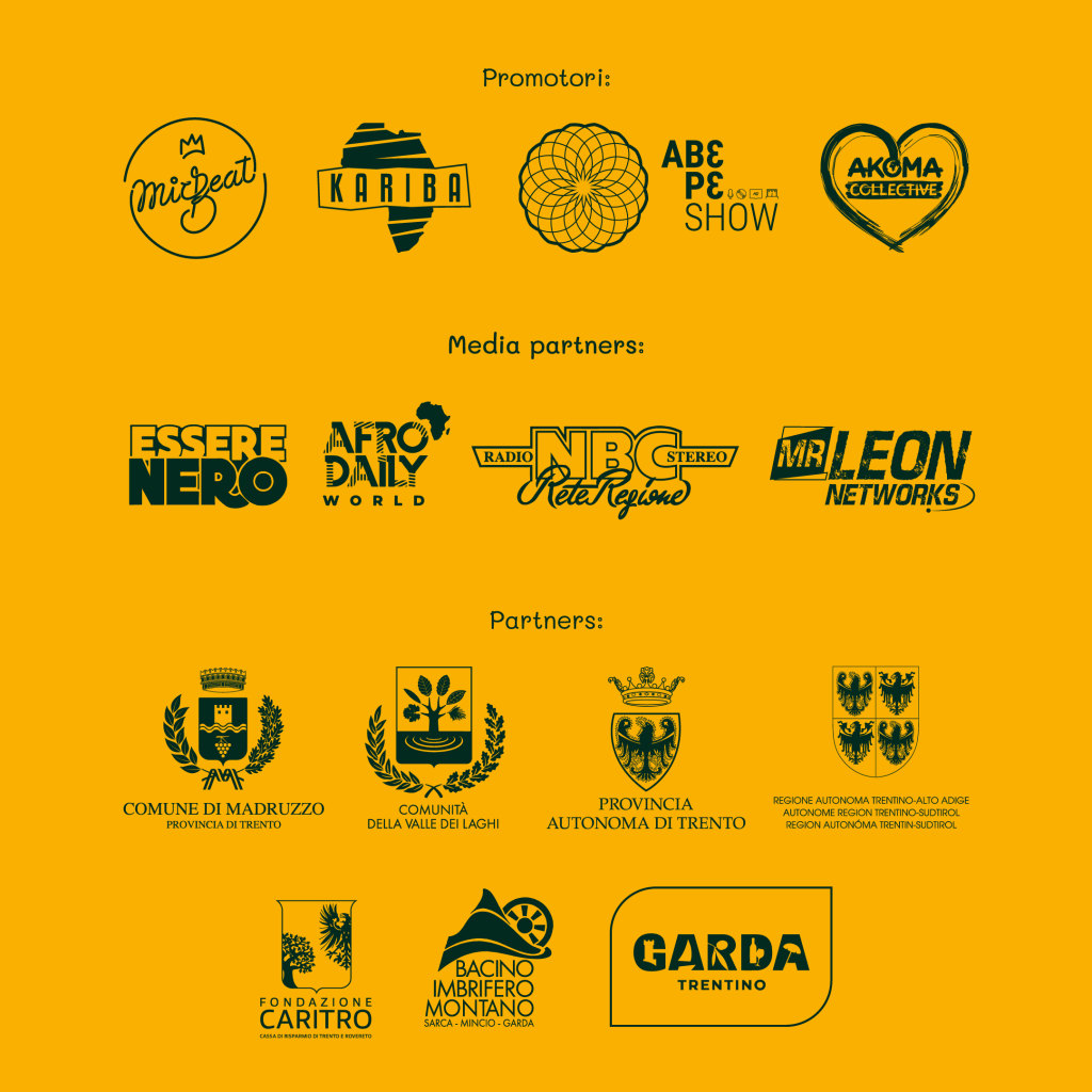 Thanks as always to the promoters of our project: the associations Kariba onlus, Akoma Collective, Siamo tutte mariposas, Mic and Beat and the production company Abe pe Show . Thanks also to our partners: the Autonomous Region of Trentino Alto Adige, the Autonomous Province of Trento, the Municipality of Madruzzo, the Community of the Valley of the Lakes, the Caritro Foundation, Garda Trentino and the Mountain Catchment Area.